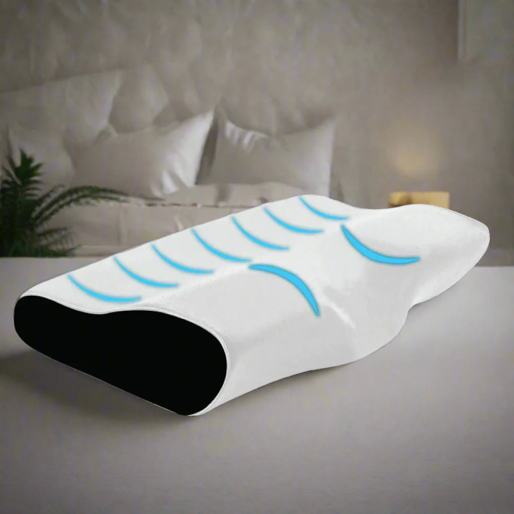 The innovative contoured, cervical, design and memory foam cradles the natural curvature of your neck, provides incredible support for spine alignment, and is guaranteed to never have you waking up with any shoulder, back, spine, nor neck pain again!